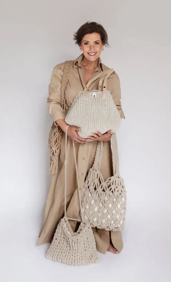 A márka termékei kézzel készülnek – szeretettel, türelemmel, valódi emberek által. A táskákat nyugdíjas hölgyek horgolják, akik évtizedes tapasztalatot, gondosságot és lelkesedést visznek minden öltésbe.