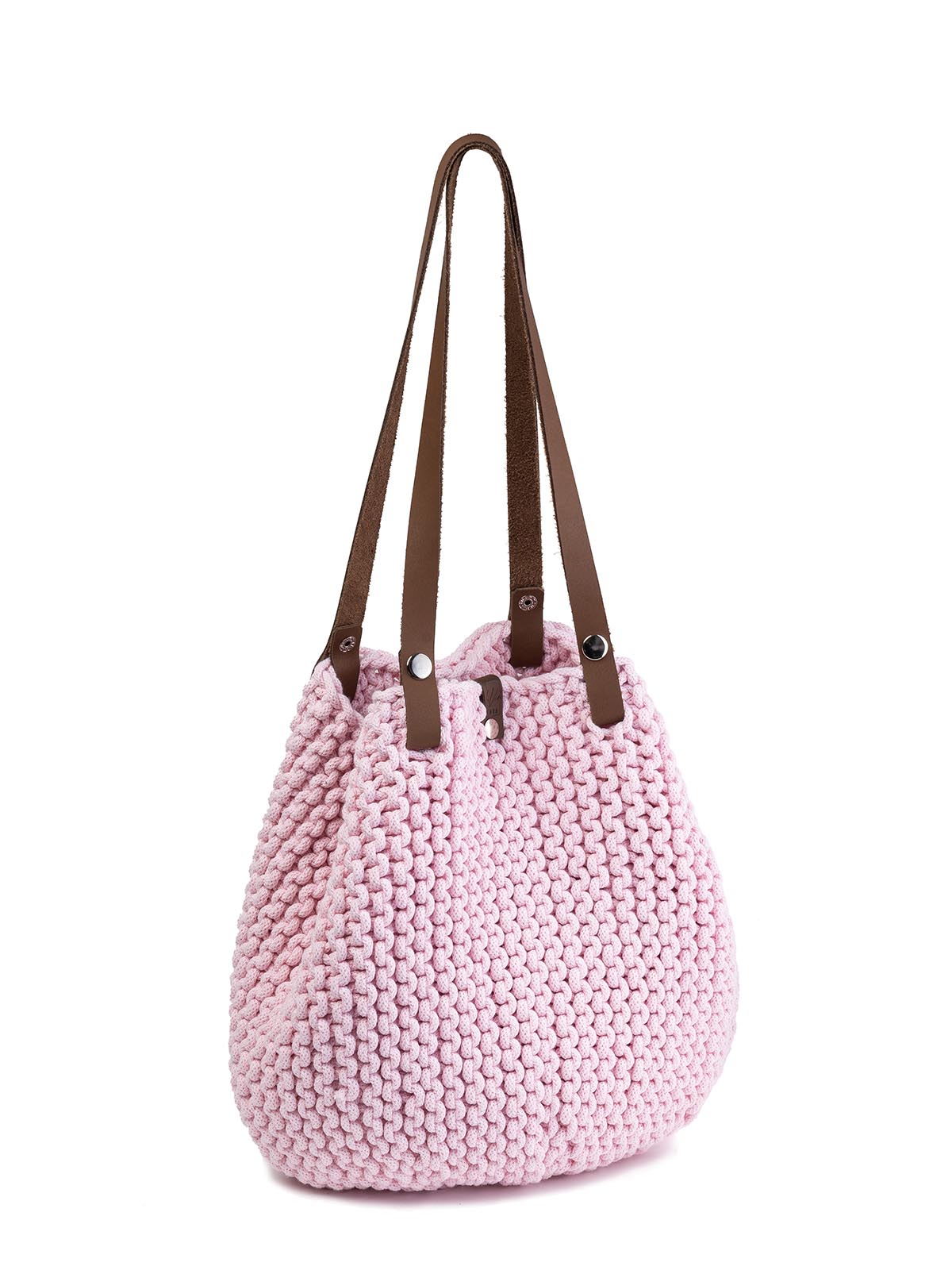 Ez a modell prémium minőségű 100% újrahasznosított fonalból készült. A táska kötése során keletkező maradék fonalakból zero waste kosarak és faliképek készülnek, így minden hasznosításra kerül.