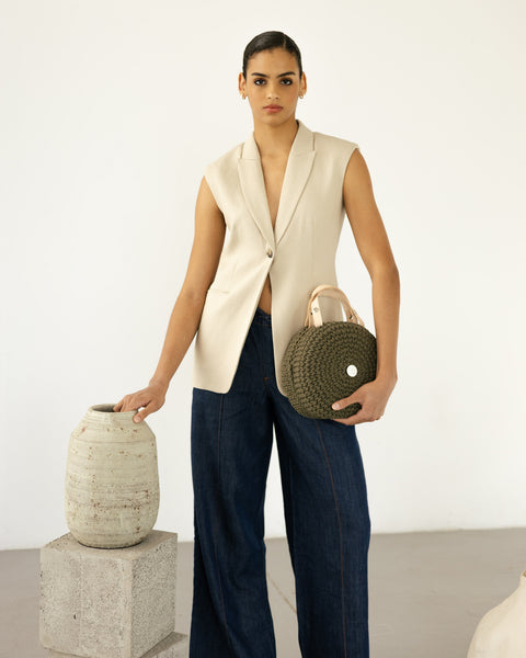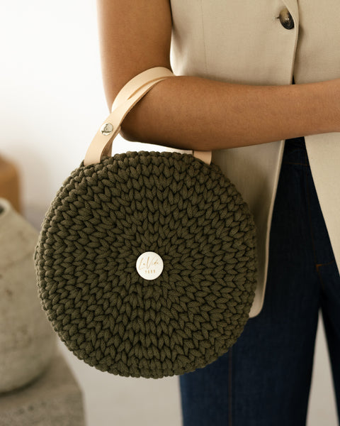 Ez a modell prémium minőségű 100% újrahasznosított fonalból készült. A táska horgolása során keletkező maradék fonalakból zero waste kosarak és faliképek készülnek, így minden hasznosításra kerül.