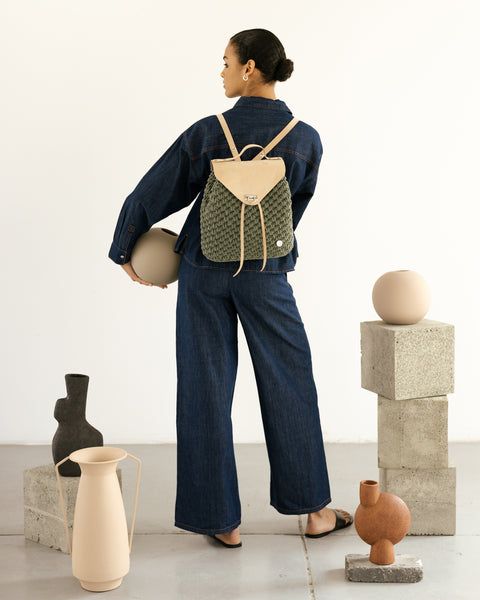 Elegáns finom bőr és ezüst színű csat - ERA hátizsákunk az a táska, amit szezonról szezonra hordani fogsz. Ebben a prémium 100%-ban újrahasznosított pamutfonalból készült táskában rengeteg hely van, laptopnak és más alapvető dolognak.