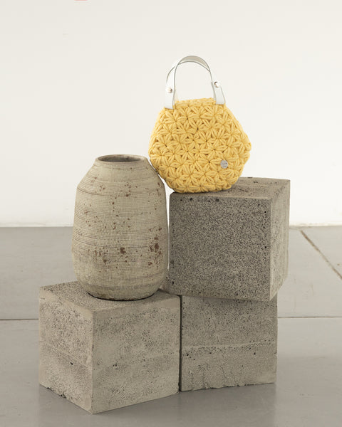 Ez a modell prémium minőségű 100% újrahasznosított fonalból készült. A táska horgolása során keletkező maradék fonalakból zero waste kosarak és faliképek készülnek, így minden hasznosításra kerül.