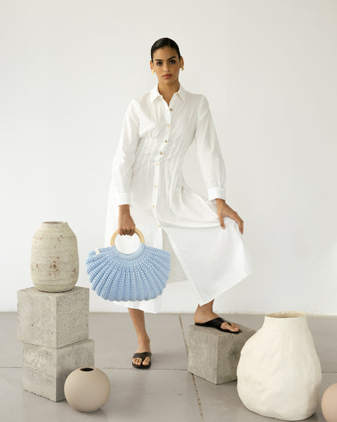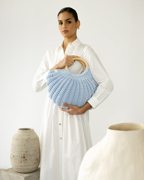 SHELL táskánk nevét méltán kapta, hiszen a táska külső mintázata a természet egyik leglenyűgözőbb alkotását, a kagylók bonyolult és egyedi mintázatát idézi meg. A mintázat nem csupán vizuális élményt nyújt, hanem tapintásra is különleges, a kagylók textúráját megelevenítve. Hasznos társad lehet egy tengerparti nyaraláson vagy egy laza városi sétán, bevásárláson. Ez a horgolt kézitáska elég tágas ahhoz, hogy elférjenek mindennapi dolgaid, de akár egy törölköző is! Engedd át magad ennek az életérzésnek!